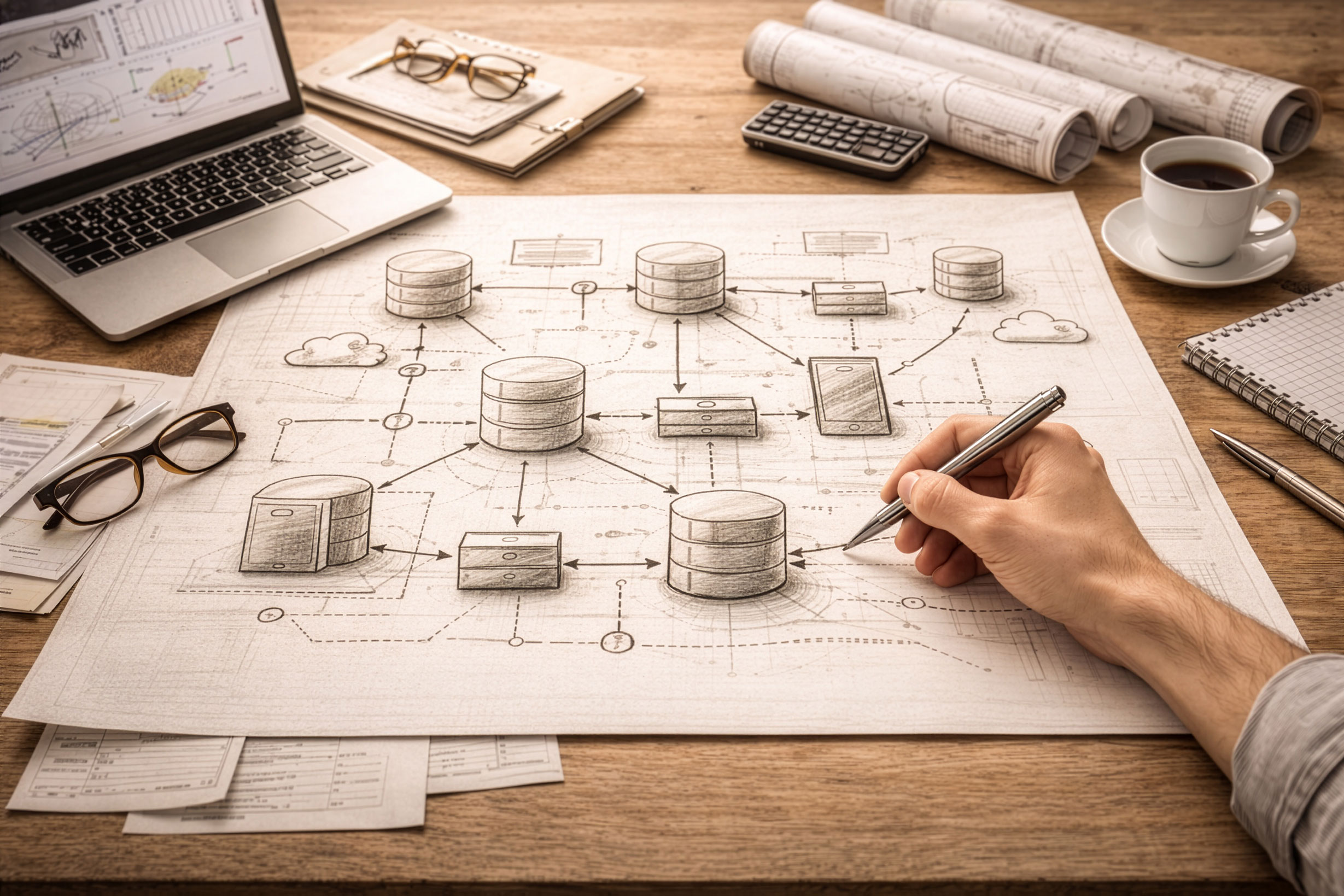 Selkeä ja hallittava kokonaisarkkitehtuuri varmistaa, että järjestelmät, integraatiot ja tiedonkulku muodostavat toimivan ja skaalautuvan kokonaisuuden. Arkkitehtuurin määrittelyssä kuvataan keskeiset periaatteet, rajapinnat ja vastuut sekä varmistetaan, että ratkaisu tukee sekä nykyisiä että tulevia tarpeita. Hyvin määritelty arkkitehtuuri vähentää monimutkaisuutta, tukee automaatiota ja parantaa kokonaisuuden hallittavuutta.